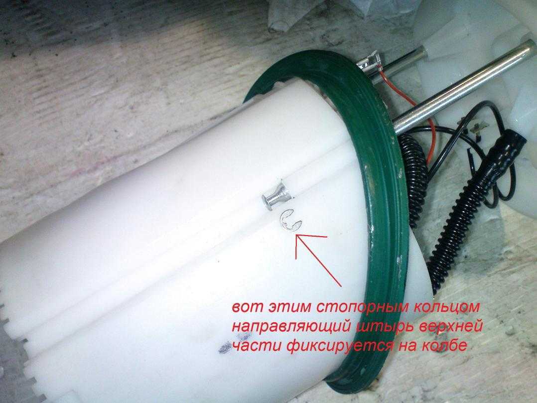 - Извлечь датчик указателя топлива предельно аккуратно, не зацепив поплавок внутри. Вот мы и добрались до топливного модуля.
