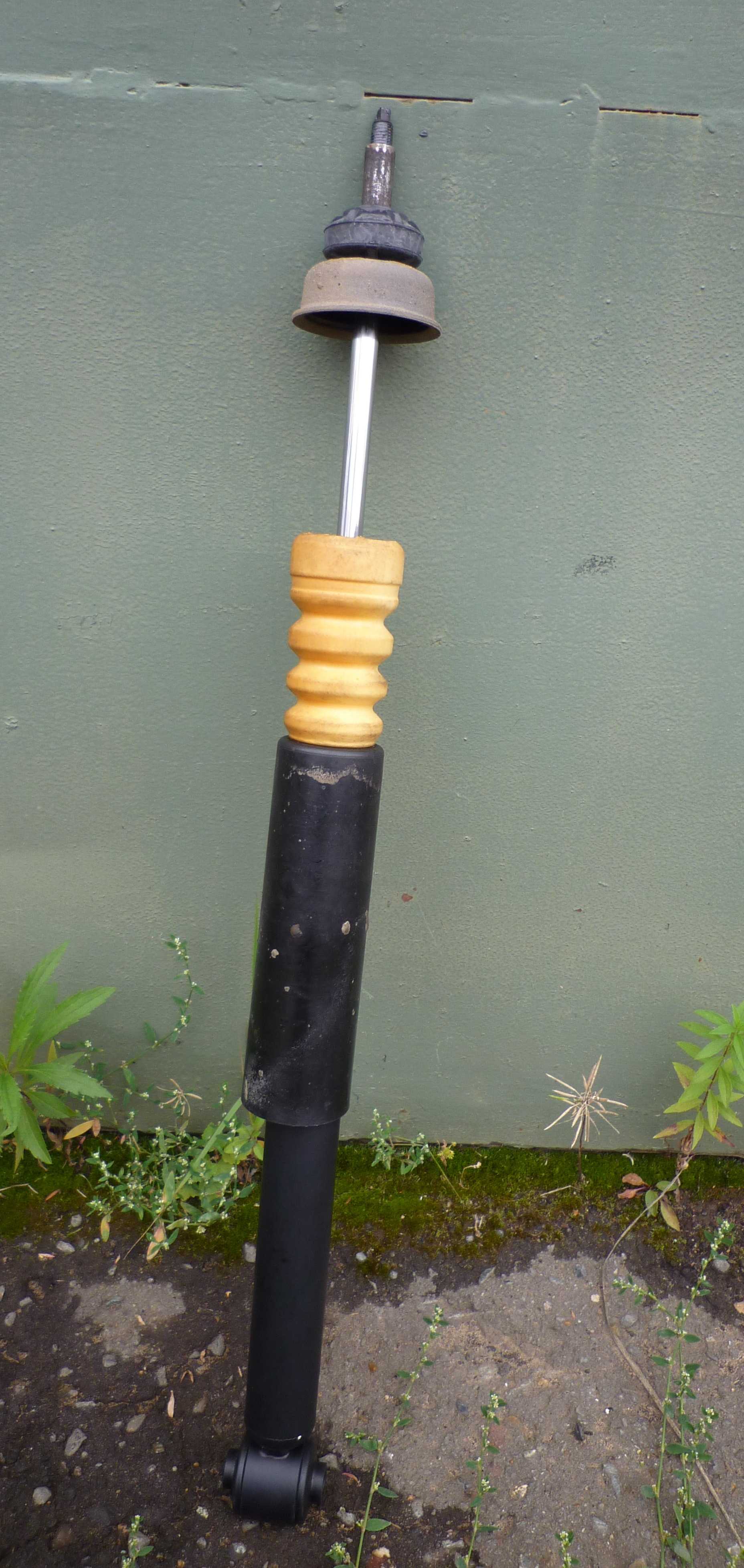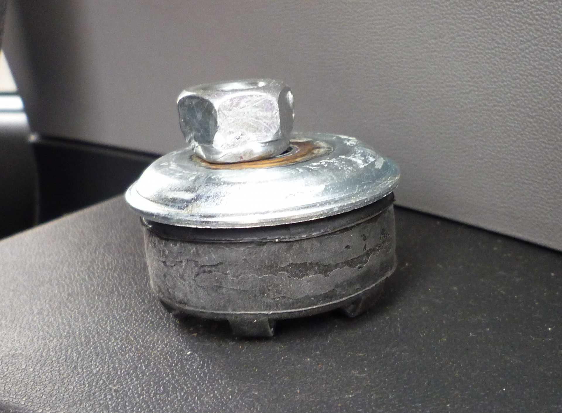 После откручивания гайки снимите металлическую шайбу и резиновую втулку. Не теряйте его.Затем выкрутите болт в нижней части. Амортизатор свободен. К сожалению, амортизатор не вынимается. Через некоторое время я поднял машину домкратом и снял амортизатор. Я не снимал колеса.