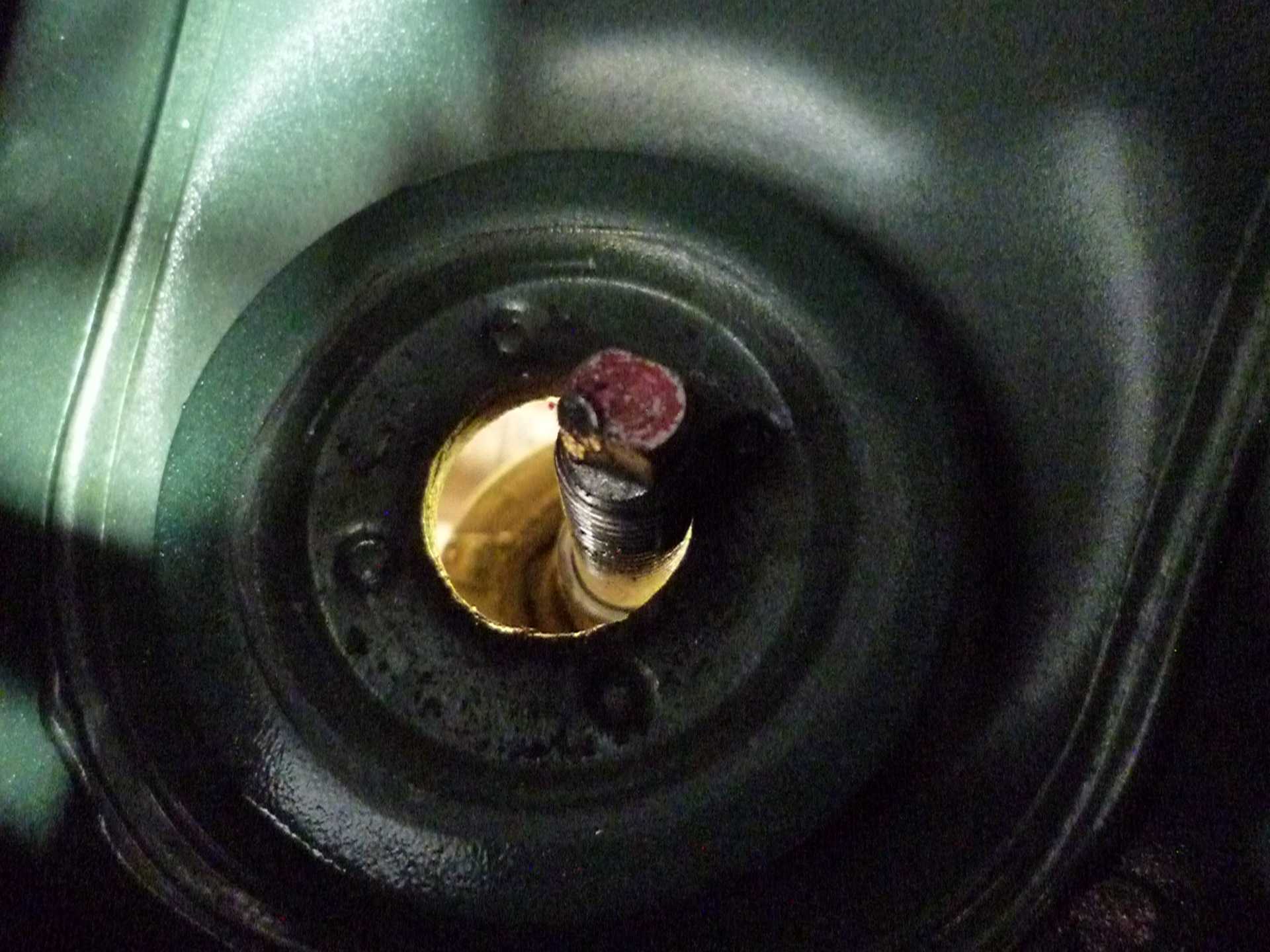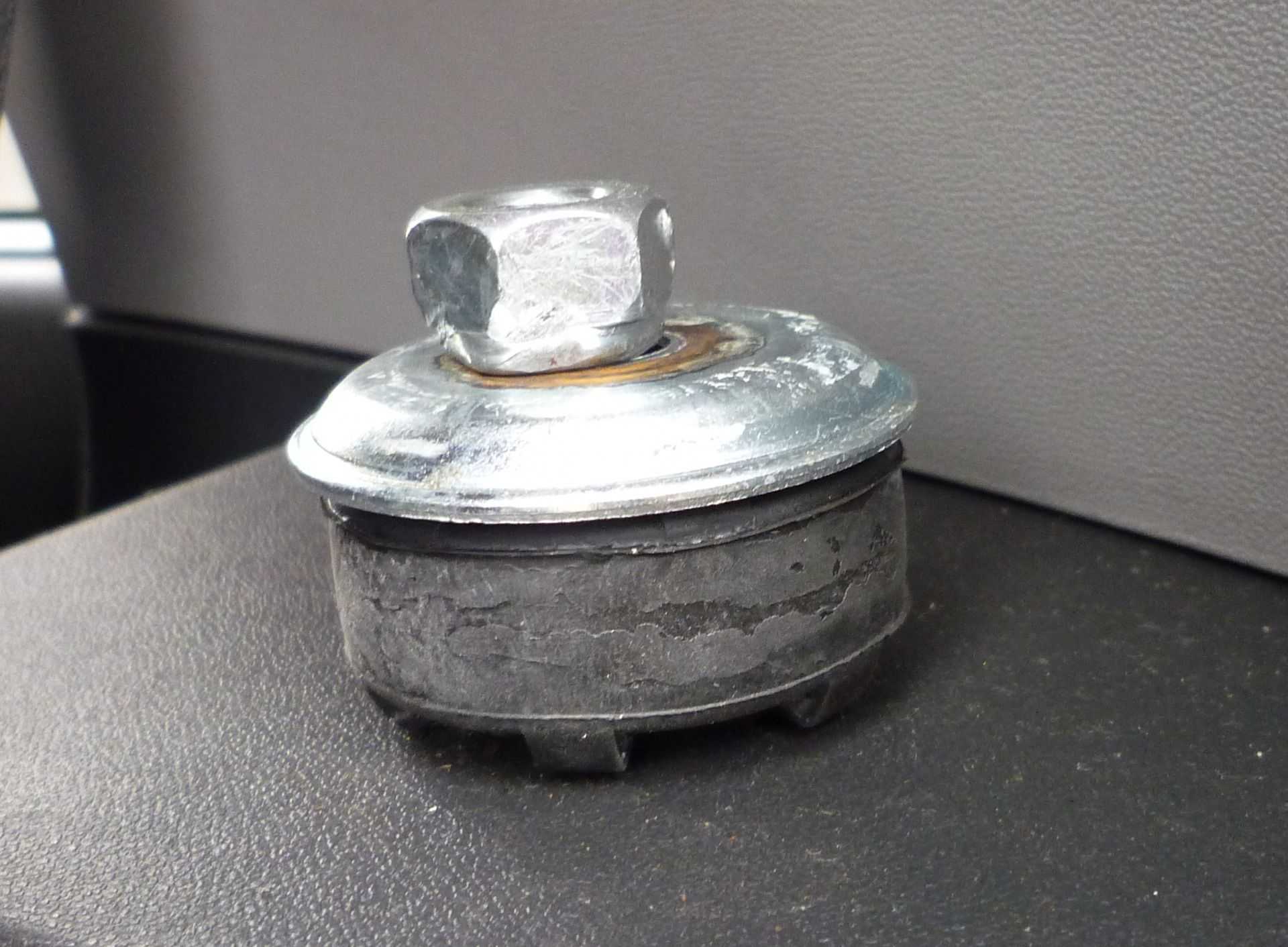 Рано или поздно шток начнет крутиться вместе с гайкой, придерживаем его ключом на 6. Как только открутили гайку, снимаем металлическую шайбу и резиновую втулку. Не теряем.