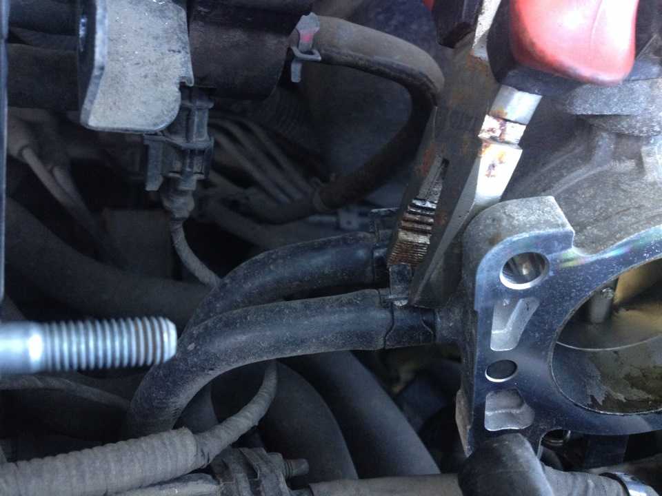 Одна из шпилек крепления дроссельного узла к впускной трубе одновременно служит для крепления кронштейна электромагнитного клапана продувки адсорбера.