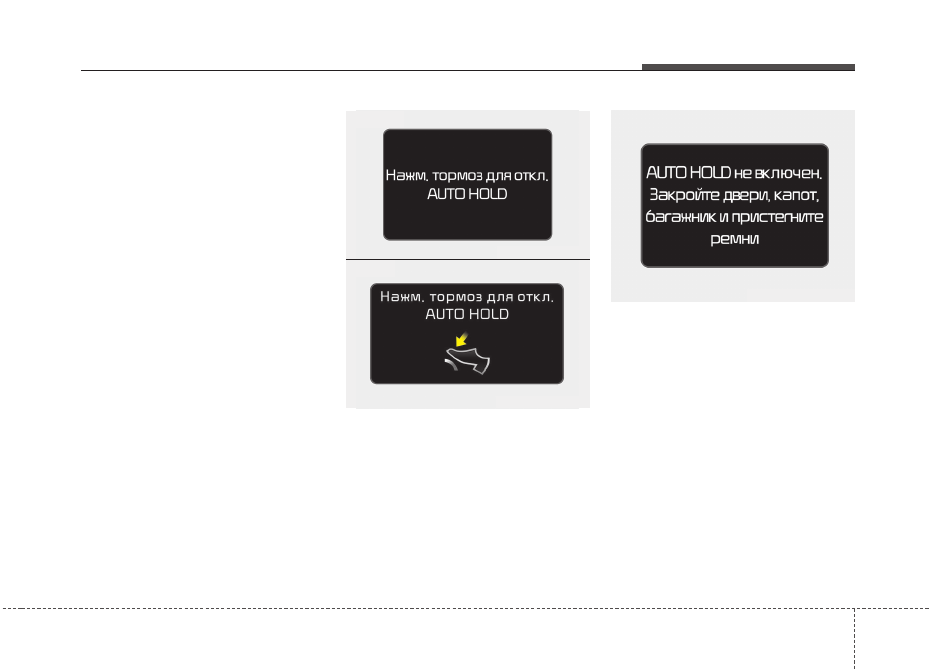 AUTO HOLD будет отключен. Нажмите тормоз.Если переход из режима
