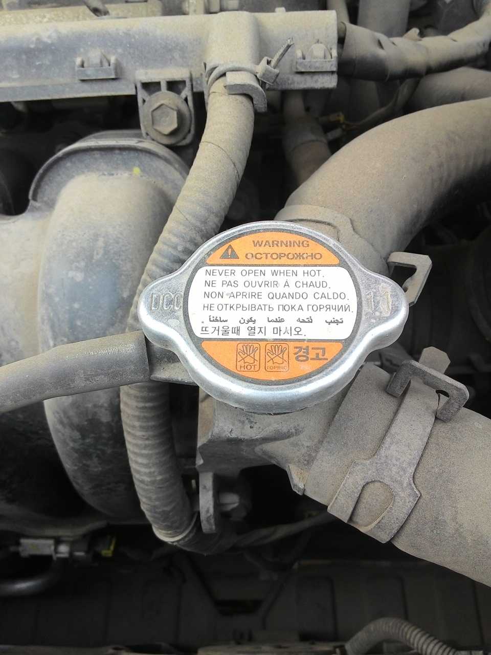 Работы по замене хладагента необходимо осуществлять на холодном двигателе, если он горячий, следует подождать пока он остынет, после чего сбросить давление в системе охлаждения, повернув крышку для залива жидкости.