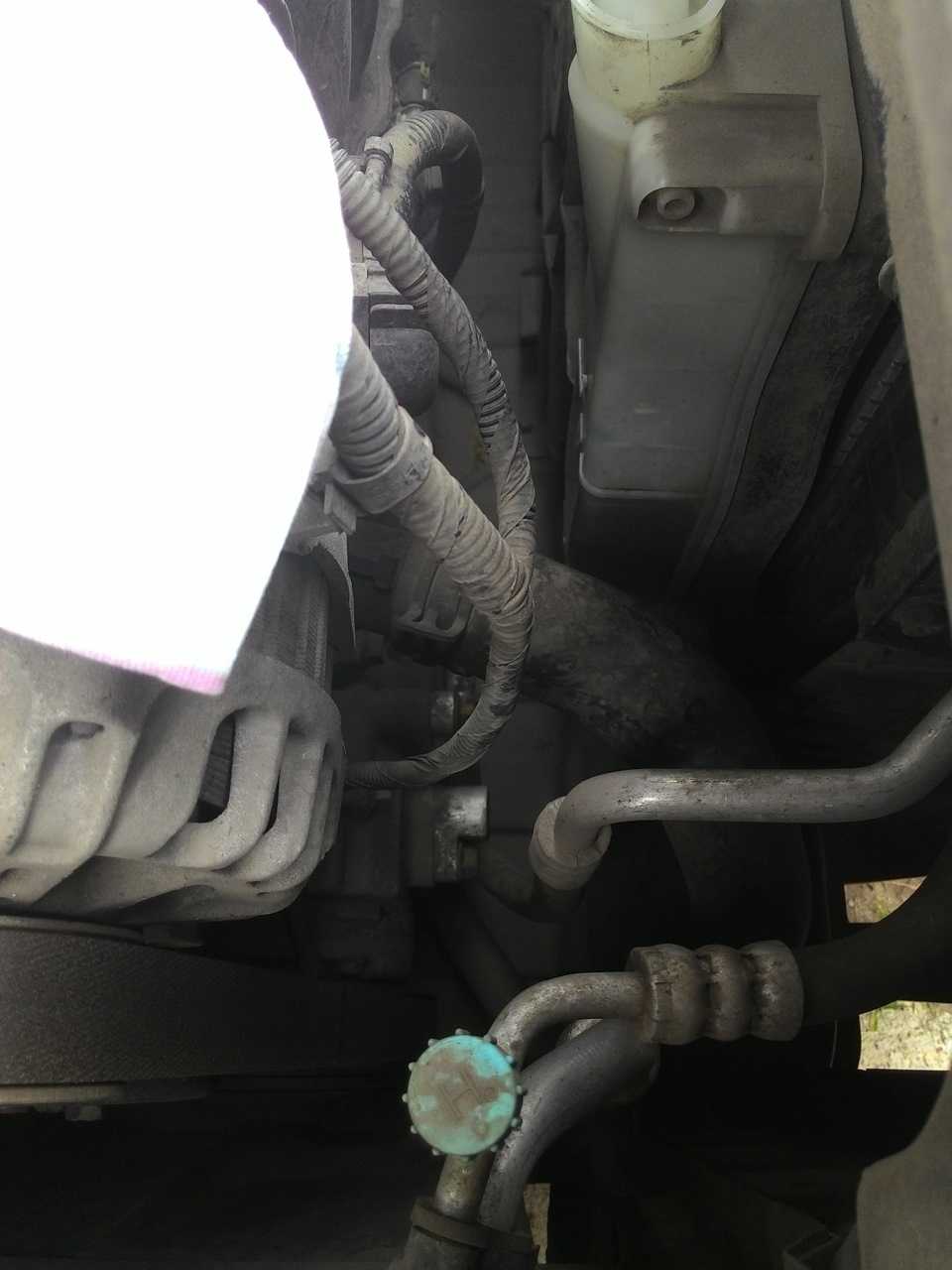 - Так как сливной пробки на двигателе нет, в инструкции нам предлагают снять нижний патрубок радиатора. Для более полного слива антифриза с блока. Патрубок находится с левой стороны радиатора внизу. По опыту, при снятии этого шланга сольется очень мало, поэтому особого смысла в этой операции нет, пропускаем.
