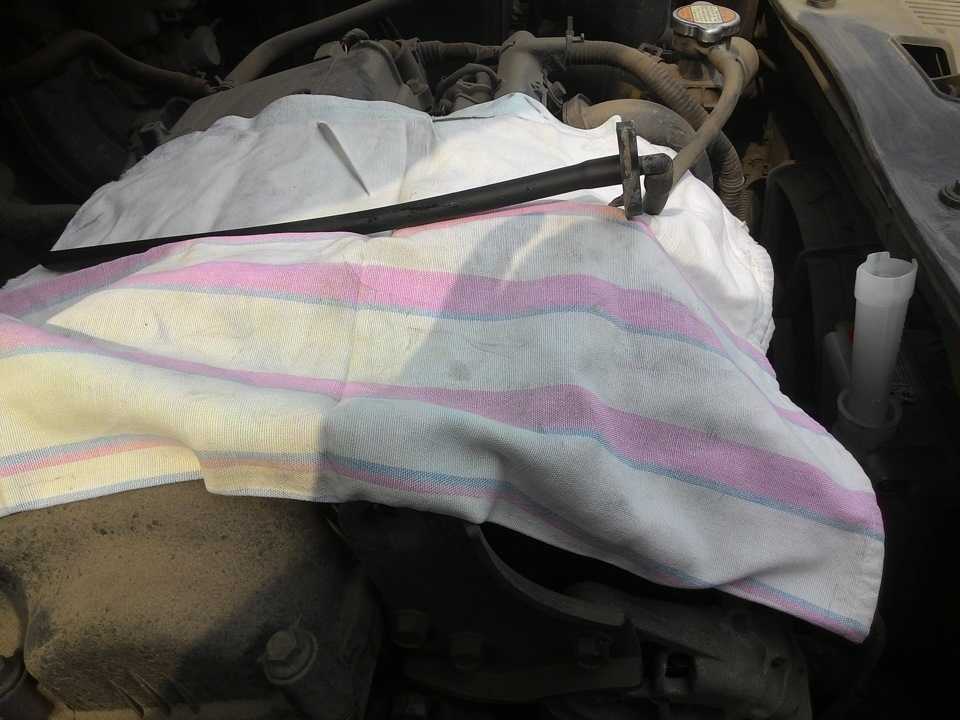Единственная трудность возникнет с откручиванием защиты двигателя, если она установлена. Но дотянутся до болтов можно, хоть это не так удобно. При этом пластиковый брызговик откручивать не придется. Все дальнейшие действия выполняем в подкапотном пространстве.