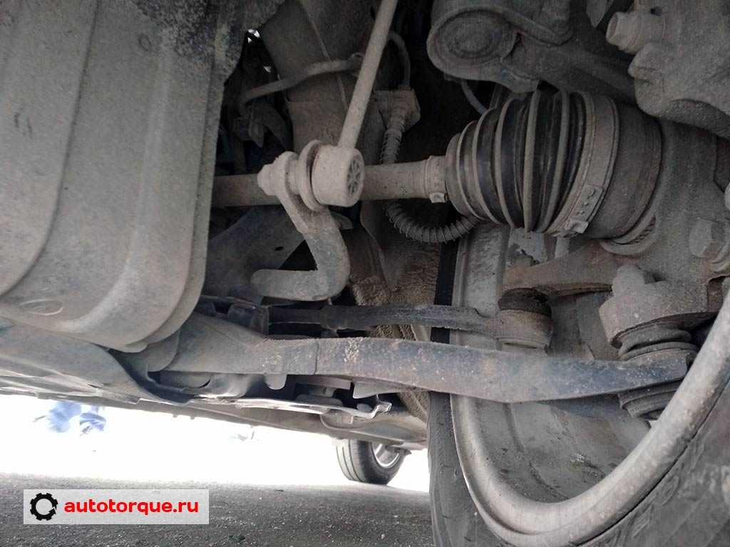 На втором месте стоят втулки стабилизатора — их ресурс около 100 ткм. Сайлентблоки передних рычагов на третьем — 130-150 ткм, шаровые практически не убитые — спокойно по 250 ткм. Передние амортизаторы работают в среднем первые 100 тыс км. С задней балкой никогда ничего не происходит, что изначально бросалось в глаза еще при знакомстве с конструкцией, если такой простой узел можно так назвать. Разрывы исключены.