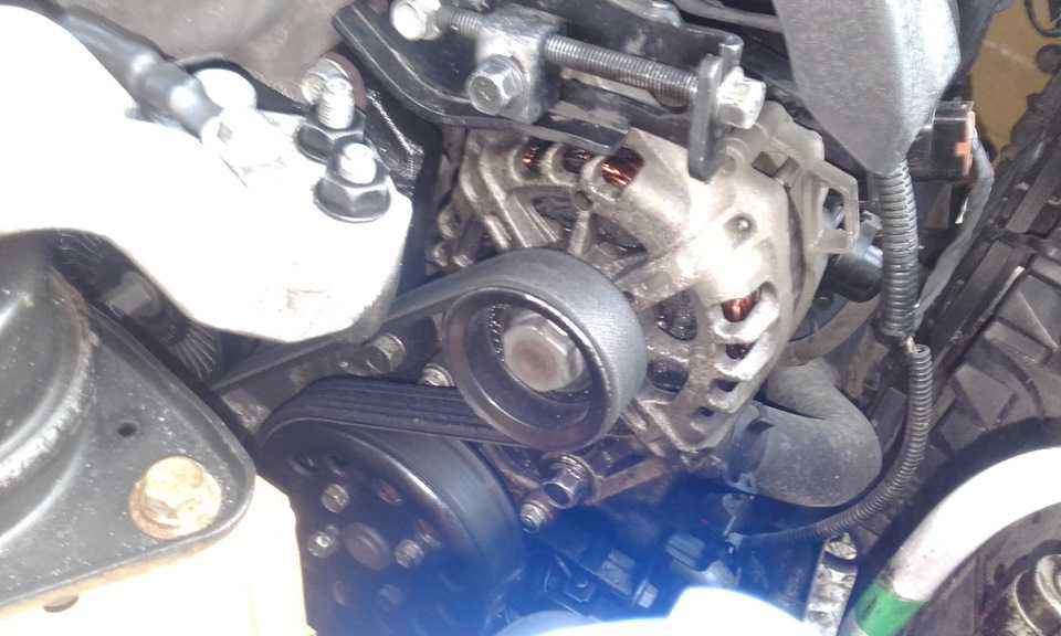 7. Сдвигаем генератор к двигателю и снимаем ремень.