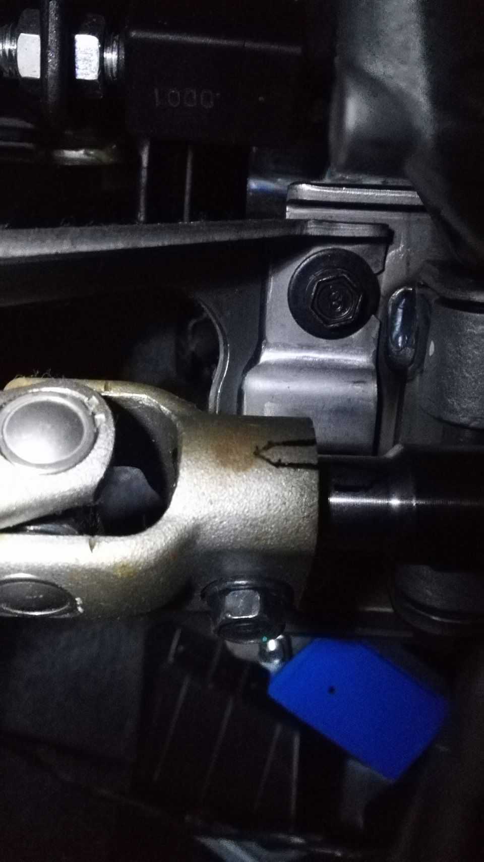 Первое что хочу добавить — карданчик в салоне после откручивания болта обязательно сразу нужно снять с рулевого вала рейки, если руками не получится то возьмите большую отвертку или монтажку. Иначе при сдергивании подрамника есть шанс что он не слетит и вы погнете кузов карданчиком.