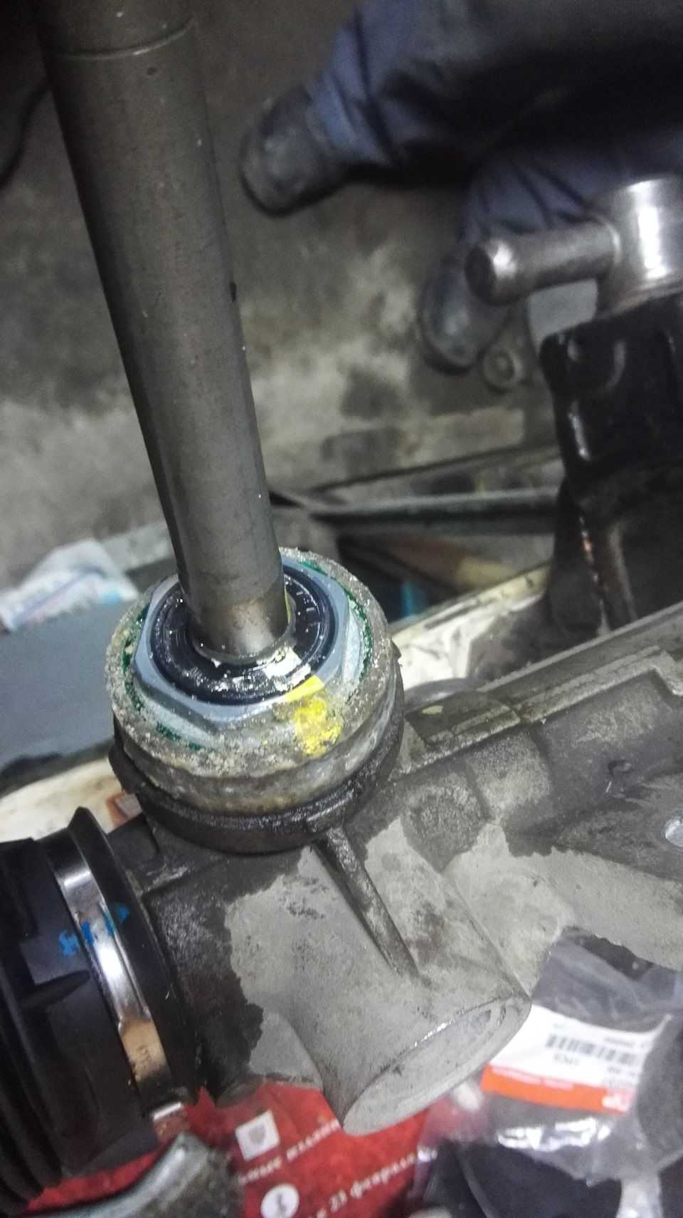 Сняли рейку, зажали в тисы, сняли пыльники, а там с правой стороны, где втулка, вода и сухой ржавый вал.