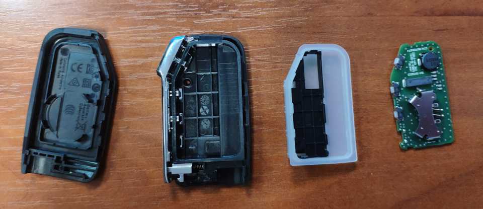 Чтобы добраться до неё, нужно располовинить корпус брелка. Он состоит из двух частей и соединён весьма крепко. Руками открыть практически невозможно.