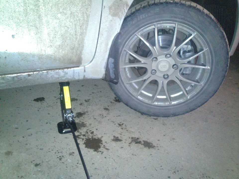 Выполняют снятие колеса, используя домкрат или подъемник.