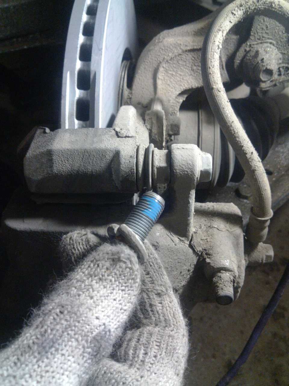 Болты крепления скобы суппорта (буквально два витка резьбы) при сборке рекомендуется промазать фиксатором резьбы. А направляющие суппорта специальной смазкой для суппортов.