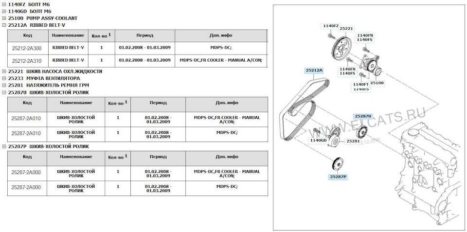 Брал запчасти зимой (когда почти не езжу), когда все приехало и добрался до авто был «сюрприз» по фирменным схемам двигатель D4FB 2007-2009 имеет три ролика (натяжной + еще два как на схеме выше) но в реальности на моторе их всего два(!) на месте верхнего просто стоит заглушка… Посмотрел фото двигателя в интернете так и есть.