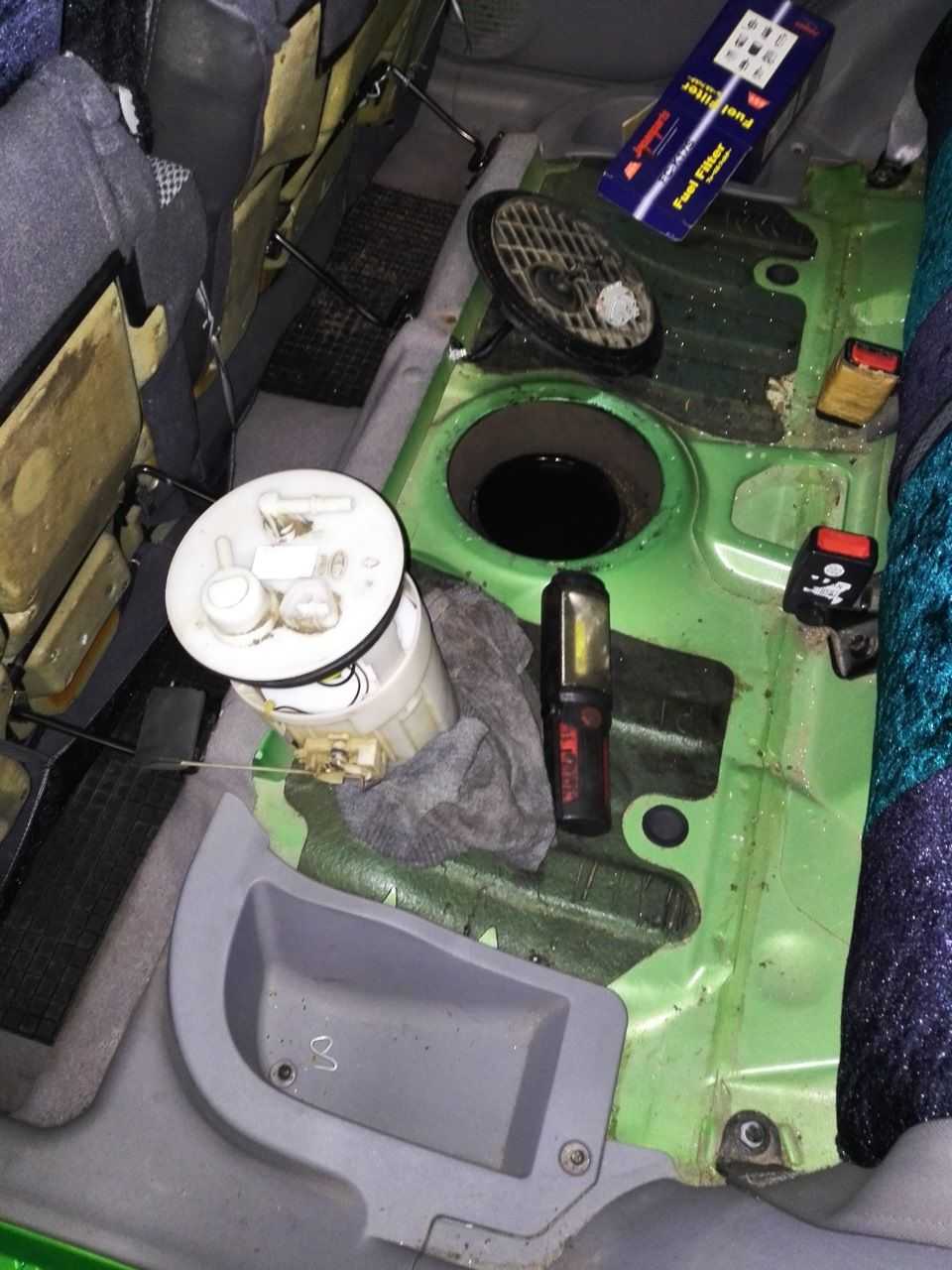 Если топливный фильтр на Киа Пиканто установлен в топливном баке, то есть два вариант замены. В случае, если есть технологический люк под задним сиденьем, это хорошо. Если люка нет, то либо можно его вырезать, либо делать замену топливного фильтра Киа Пиканто через снятие / установку топливного бака.