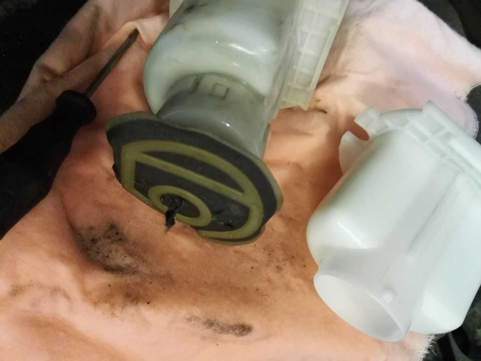 Открутите крепежные элементы топливного насоса. После этого, снимите кольцо и предельно аккуратно вытащите сам фильтр из корпуса. Постарайтесь не пролить оставшееся в фильтре топливо и не забудьте зафиксировать положения поплавка, определяющего уровень топлива.