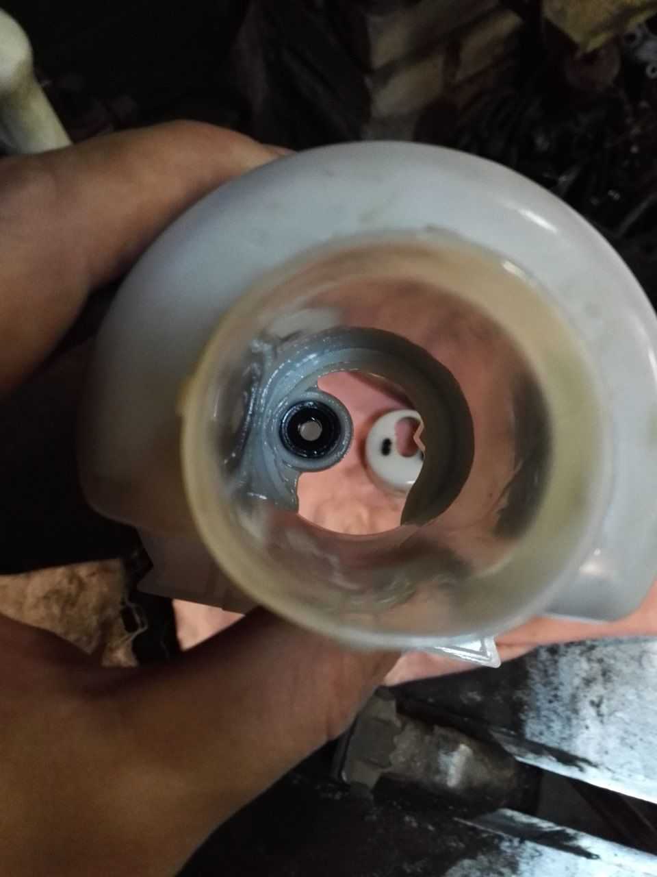 Извлекаем металлический клапан.Из старого топливного фильтра извлекаем уплотнительные кольца из резины.Ставим новый клапан в новый очистительный барьер.Ослабляем защелки, снимаем деталь из пластика, затем уплотнительные кольца.