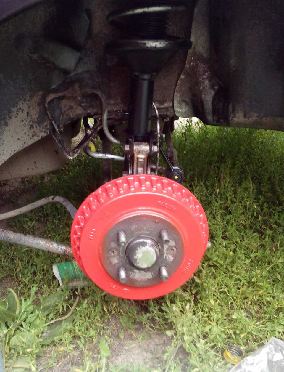 Ущербные ржавые тормозные барабаны по-быстрому очистил, обезжирил, загрунтовал и покрасил в самый спортивный цвет, ибо люблю все делать как положено, даже если не себе)))