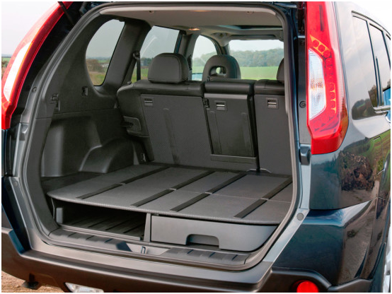 Багажное отделение от корпорации Nissan просторное, даже если рассматривать автомобиль в качестве внедорожника: его объем составляет 479 литров. «Изюминкой» багажного отсека можно назвать его двойное дно – в «подвальчике» спрятаны выдвижные ящики, в одном из которых нашло свое место запасное колесо. Если же есть необходимость существенно увеличить объём багажника, можно сложить задний ряд пассажирских сидений, в итоге получим целых 1773 л.