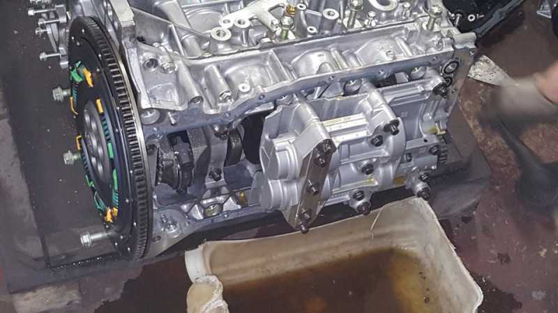 наличие подтеков масла, особенно поддон и переднюю крышку двигателя (крышка