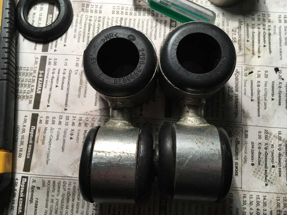 После установки выхлопа нужно было позаботится о стабилизаторе. Поскольку выхлоп у меня от Гранты/Калины 2, то переход на стабилизатор от гранты — почти вынужденная мера. Стабилизатор Гранта 22 мм 21900290601000 был приобретен новым по хорошей цене, но как оказалось он 2012 года выпуска и резинки поддубели, при чем стойки стабилизатора просто намертво приклеились к стабу верхними втулками.Отклеить их получилось только обильно пролив силиконом, и оторвав вставляя шило по кругу резинки.Были куплены резинки под замену.Потренеровавшись на старых убитых стойках стабилизатора приловчился как их заменить.