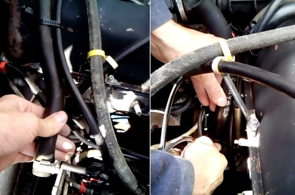 Одеваем новые шланги, надежно фиксируем хомутами.