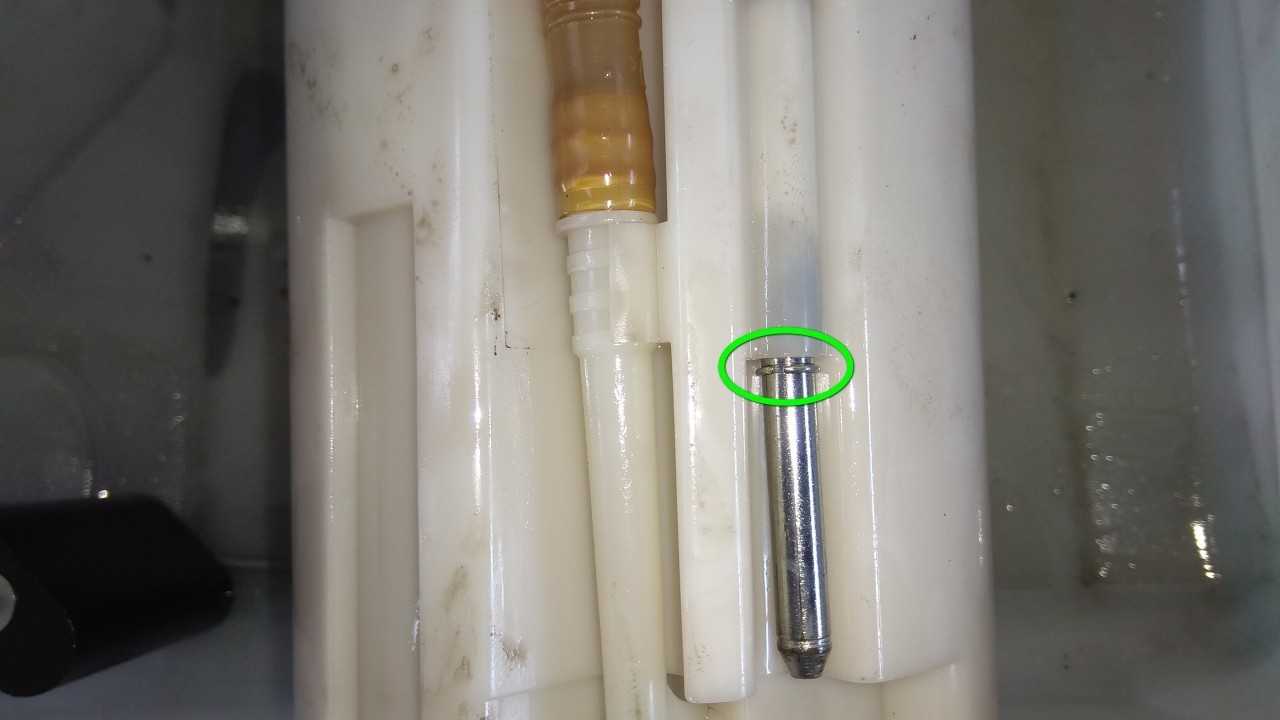Теперь когда колба разсоединена у нас есть доступ к насосу. Отверткой поддеваем и отсоединяем фильтр грубой очистки.