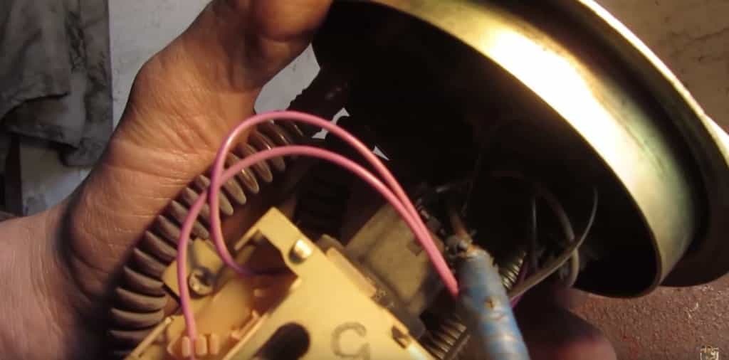 - Открутите прижимной фланец и вытащите узел через отверстие. Почистите все контакты и пластину реостата, установите блок на место.