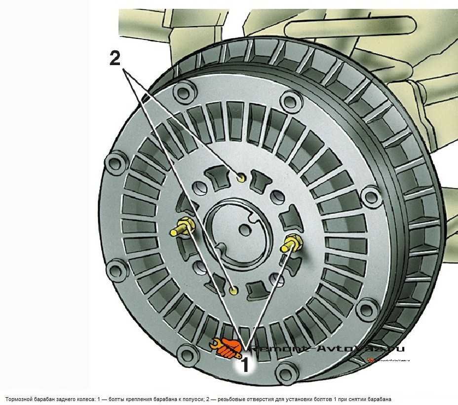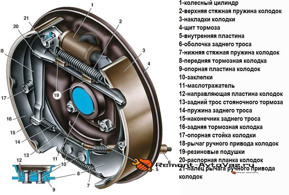 Тормозная система ВАЗ-2107 задней оси имеет иное устройство. Все элементы ее спрятаны внутри тормозного барабана: