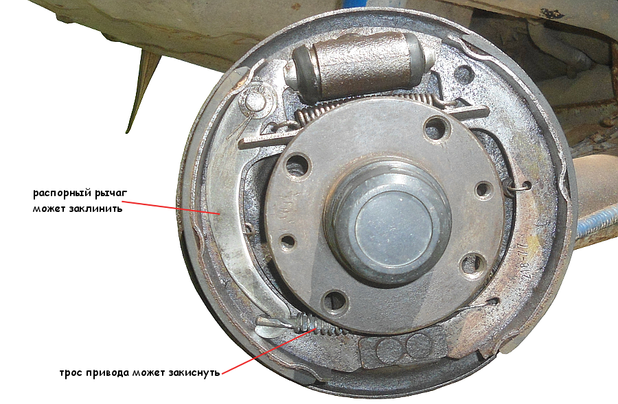— Разбухание резиновых элементов тормозной системы мешающее нормальному растормаживанию после отпускания педали тормоза
