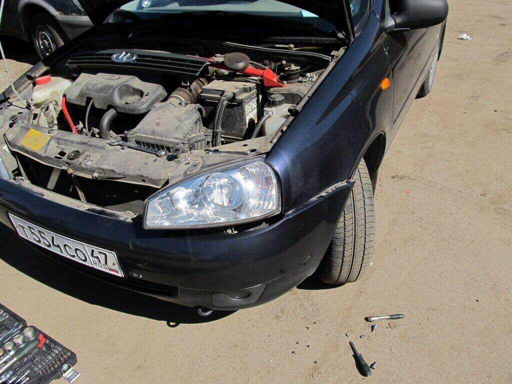 Для того чтобы заменить фару на модели 1118, необходимо сначала снять передний бампер. После этого можно получить доступ к винтам, расположенным как сверху, так и снизу крепления фары. После этого необходимо отсоединить все жгуты проводов, прежде чем вынимать фару в сборе.