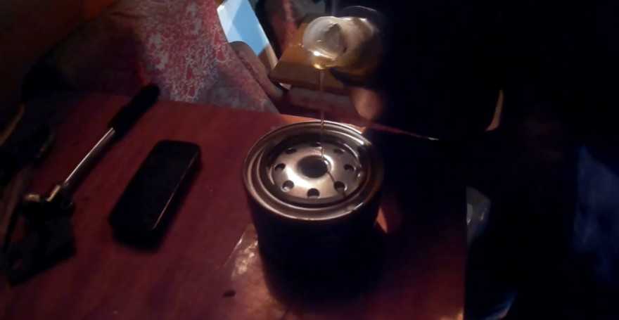 Чтобы не терять времени пока сливается отработанное масло, наполните новый масляный фильтр свежей смазкой. Это значительно сократит время заполнения масляной системы при первом запуске и предотвратит его работу в условиях «голодания».