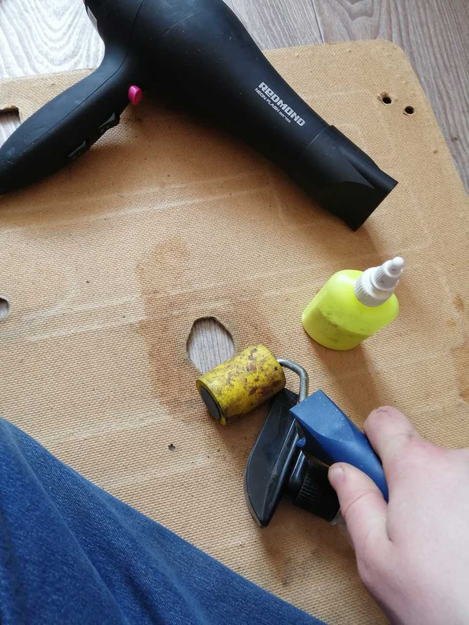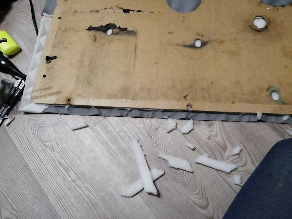 - Приклеить поролоновую подложку на фанеру.