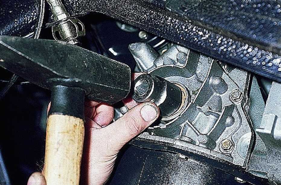 Для запрессовывания на сальник устанавливается головка на 27, и он досылается в гнездо легкими ударами молотка.