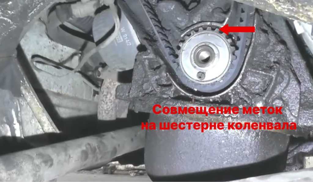 Метка на звездочке должна совпасть с меткой на масляном насосе, это важно для нормальной работы ГРМ, после того как будет надет ремень. При замене сальника рекомендуется заменить натяжной ролик и ремень ГРМ, даже если он не имеет видимых повреждений. При установке ремня нужно обратить внимание на соответствие всех меток, иначе двигатель просто на заведется