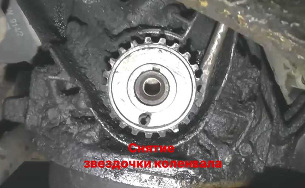 Чтобы снять звездочку на коленвале, используют специальные съемники. Если их нет, нужно взять длинную отвертку, завести ее под звездочку сверху и, применяя как рычаг, аккуратно выдавить наружу, чтобы она сошла с оси коленчатого вала.