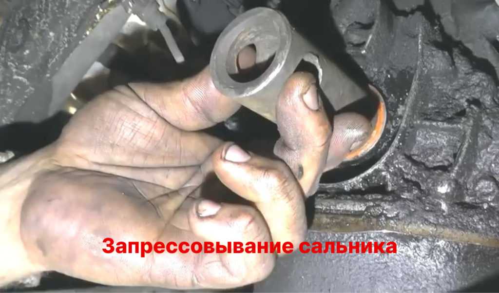 6. Наносим на рабочую кромку нового сальника слой моторного масла и запрессовываем сальник инструментальной головкой на 30 или отрезком подходящей трубы. |