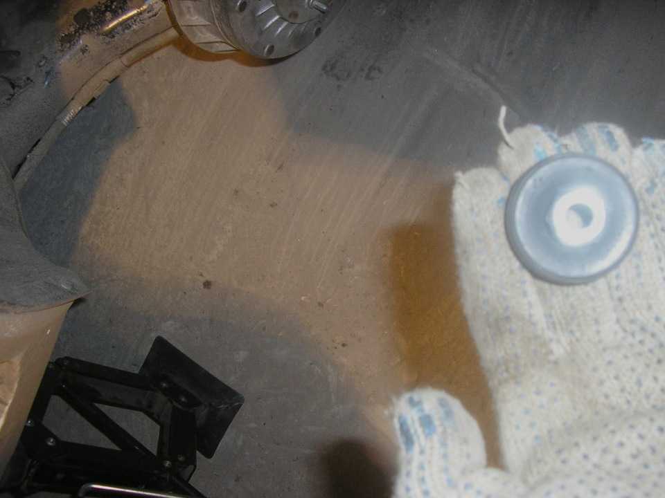 7. Берите металлическую щетку и вычищайте все детали крепления стойки к элементам кузова и ходовой системы.