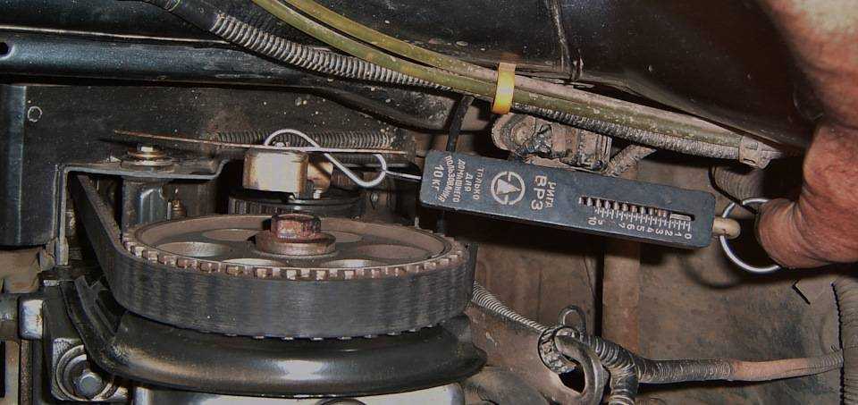 Натяжение ремня должно быть таким, чтобы руками он мог повернуться на 90 градусов, либо при давлении 10 кг/см на ремень он должен прогибаться не более 15 мм.