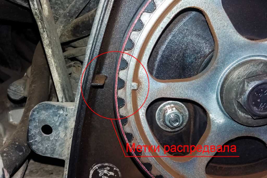 - Поверните коленчатый вал на два оборота и проверьте совпадение меток.