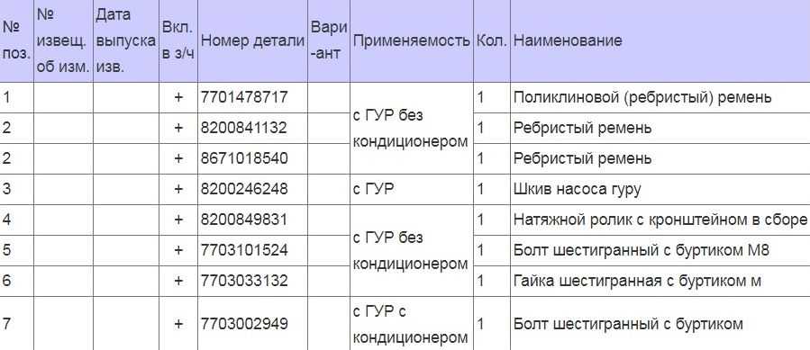 - На автомобиле с ГУР и кондиционером (8кл K7M и 16 кл K4M) — 6PK1820 (шестиручейковый), длина 1820 мм.