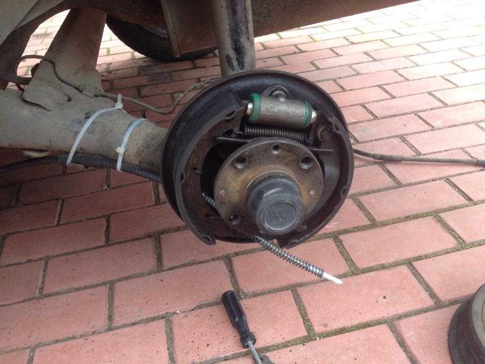 - После этого следует снять задние тормозные барабаны и демонтировать пружинки, посредством которых фиксируются тормозные колодки. Колодки можно также заменить, если они имеют чрезмерную степень износа.