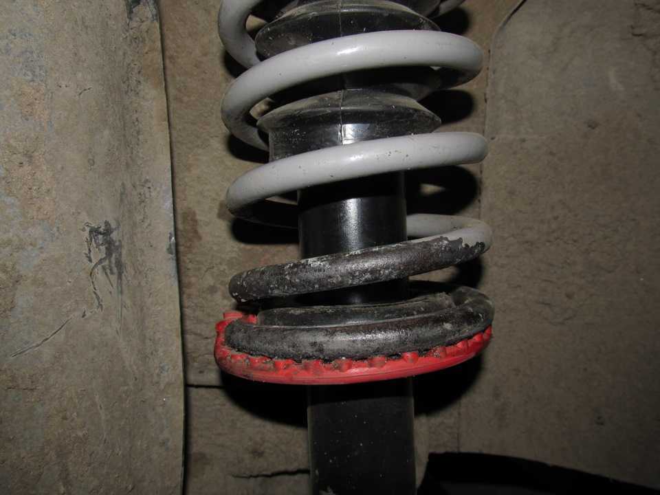 - Перед установкой новой опоры, проверяем состояние опорной чашки, очищаем ее от ржавчины и грязи, устанавливаем под нее виброгасители (если они приобретены);