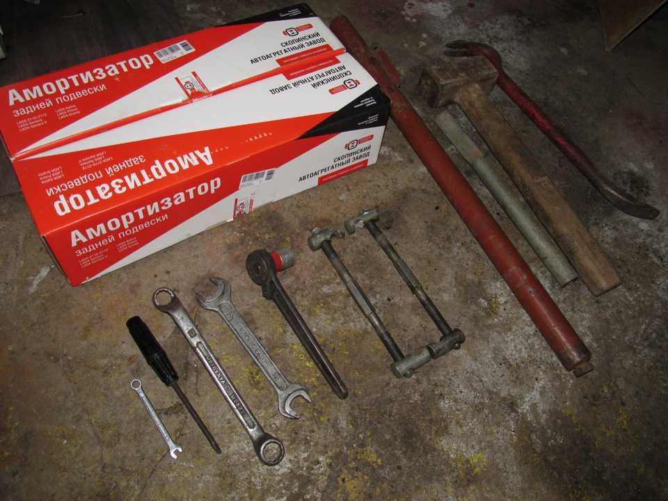 Приборы и материалы (как в лабораторной работе):1) ключи на 6, 17, 192) отвертка, стяжки пружин, WDшка4) молоток, кувалда (без них никак не обходилось в моем случае)5) рычаги для увеличения силы,6) монтировка (у меня был гвоздодер)7) сами стойки и запчасти к ним
