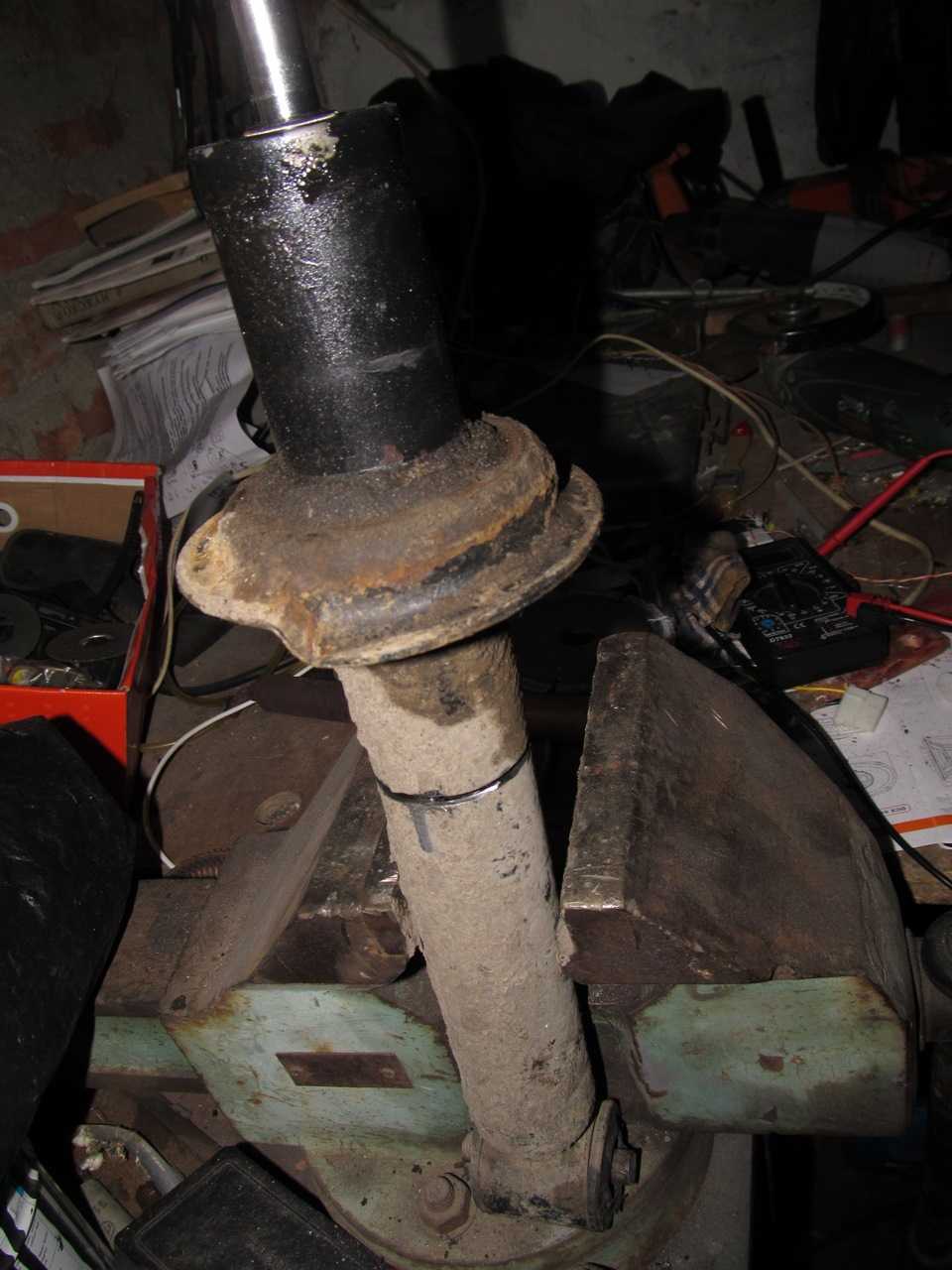 Прежде чем собирать стойку, нужно убедиться в отсутствии провалов, рывков и посторонних звуков в работе амортизатора. При их обнаружении деталь подлежит замене.