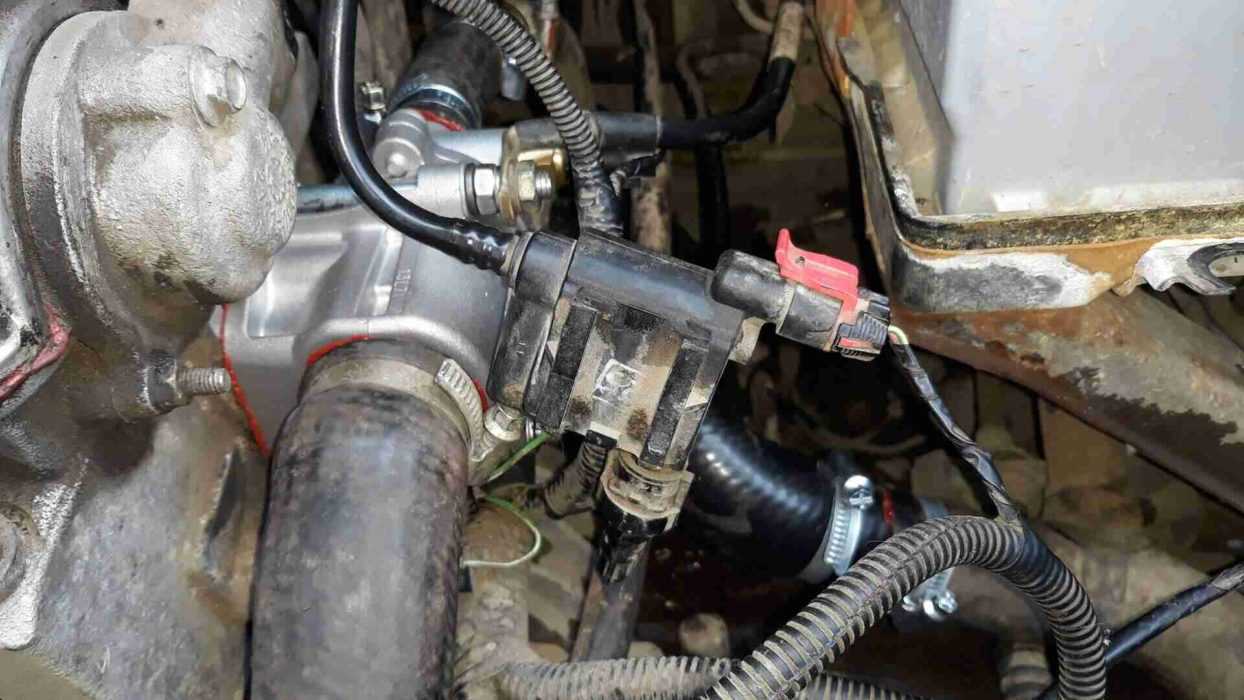 Теперь вынимаем разъем с клапана продувки адсорбера, и снимаем его с крепления для этого нужно просто потянуть немного вверх после чего отводим его вместе с трубками немного в сторону, чтобы он не мешал дальнейшей работе.