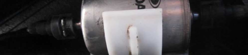 Топливный фильтр имеет монолитную конструкцию, поэтому невозможно провести визуальную оценку его состояния. Но определить его пропускную способность достаточно просто по давлению на выходе, подсоединив к выходному шлангу манометр. При работающем бензонасосе давление должно составлять 2,7 атмосферы. Если оно ниже указанной нормы, требуется заменить расходник.