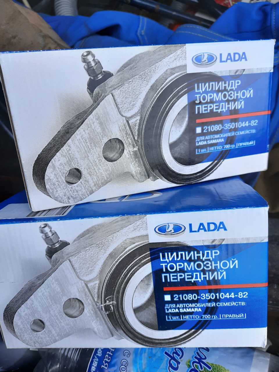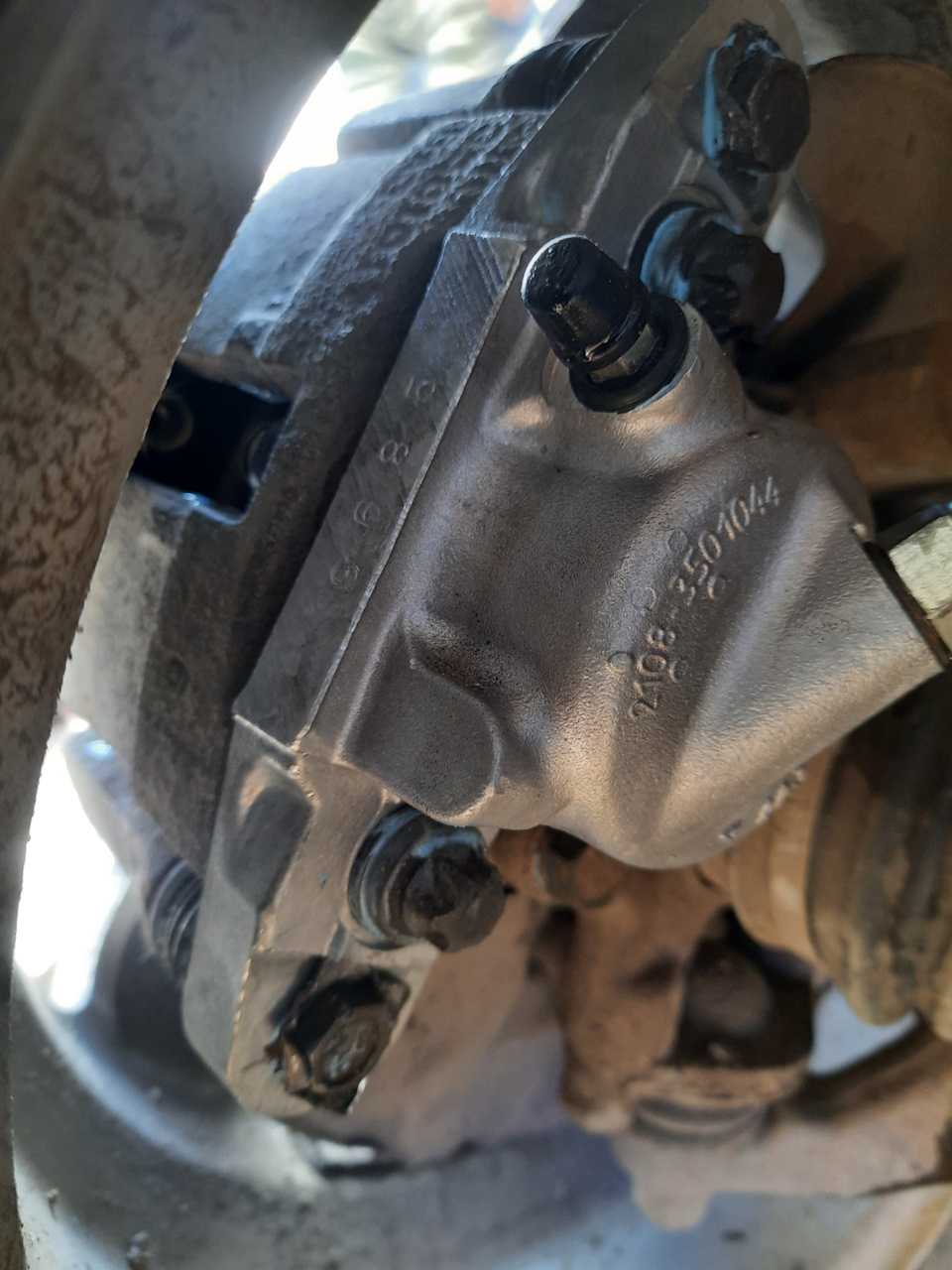 Дальше интереснее, тормоза бы прокачать, а штуцер до прокачки с цилиндрика не крутиться, посетила мысль высверлить, началась эпопея с демонтажем суппорта, болты направляющих закисли наглухо, покрутив за сами направляющие понял что толков не будет, открутил целиком весь механизм.Зажал в тиски и начал высверливать, не получилось, вкратце нижняя часть штуцера прилипла так, что просверлив даже глубже канала в ней, удалить остатки не удалось.Нет так нет, покупаем новые передние тормозные цилиндрики, менять так парой, брал завод 21080-3501044-82 и 21080-3501045-82.