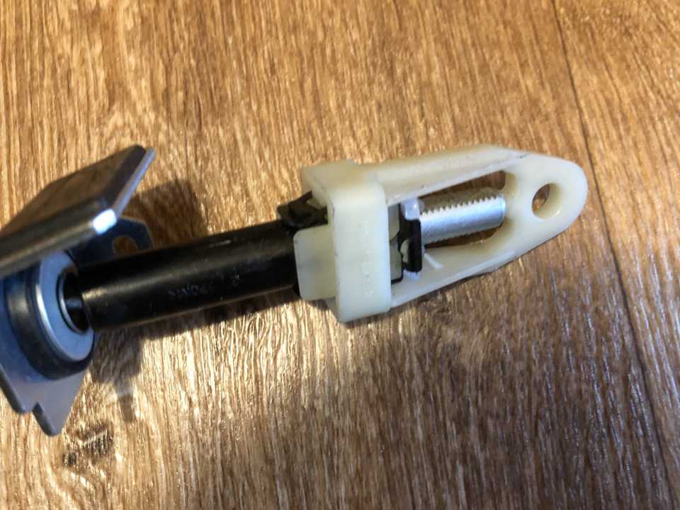Сначала устанавливается чехол для уплотнения, затем сам корпус механизма на палец троса. После осуществления его фиксации требуется закрепить оболочку троса. Наконечник проводка проворачивается определенным образом, так чтобы его торец находился на уровне поводка, последний нужно установить на свое место.