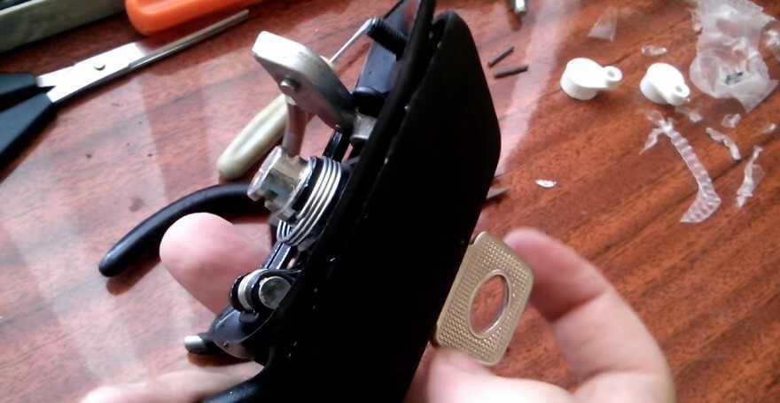 - Провести монтаж новой возвратной пружины. Обычно она не входит в стандартный комплект замены и покупается отдельно. При правильном монтаже ключ, находясь в скважине, должен свободно проворачиваться назад.