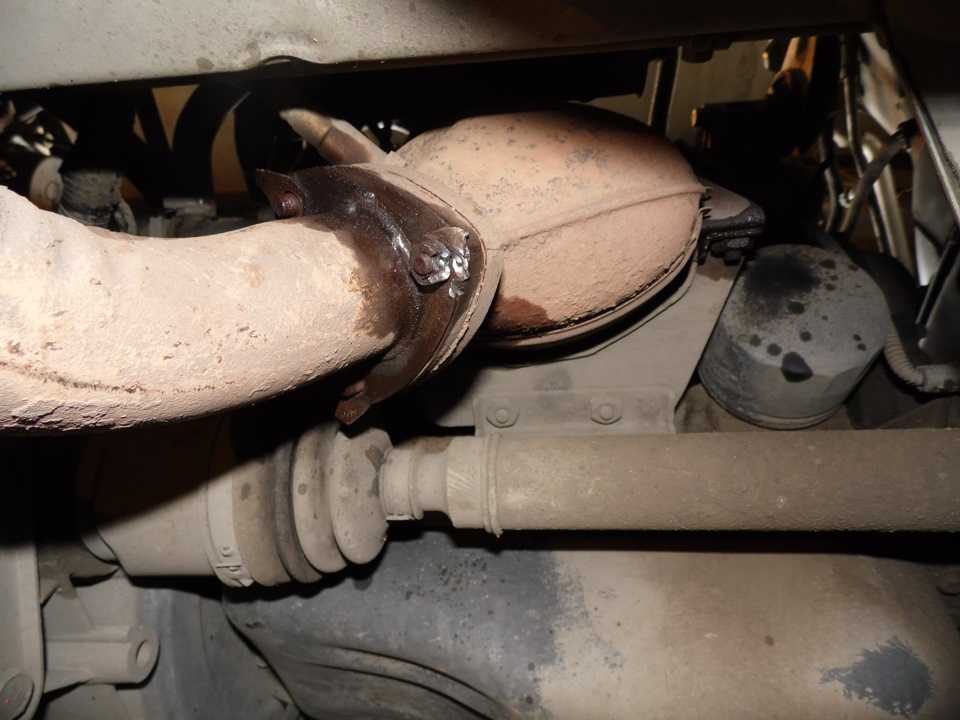 Сначала нужно отсоединить трубу дополнительного глушителя от катколлектора: