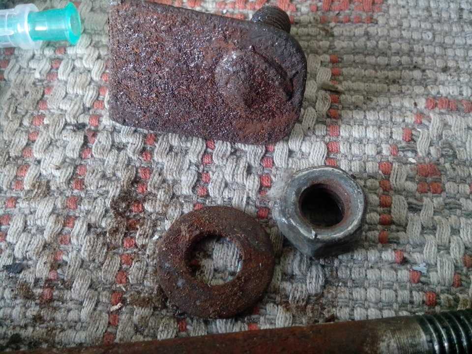 Лучший вариант — предварительно смазать все при помощи WD-40. Это универсальная смазка, обладающая эффектом растворения окислений (в том числе и ржавчины). Продается практически в каждом магазине автомобильных товаров. После съема «ударника» сам кронштейн рекомендуется тщательно почистить полностью от ржавчины или заменить на новый.